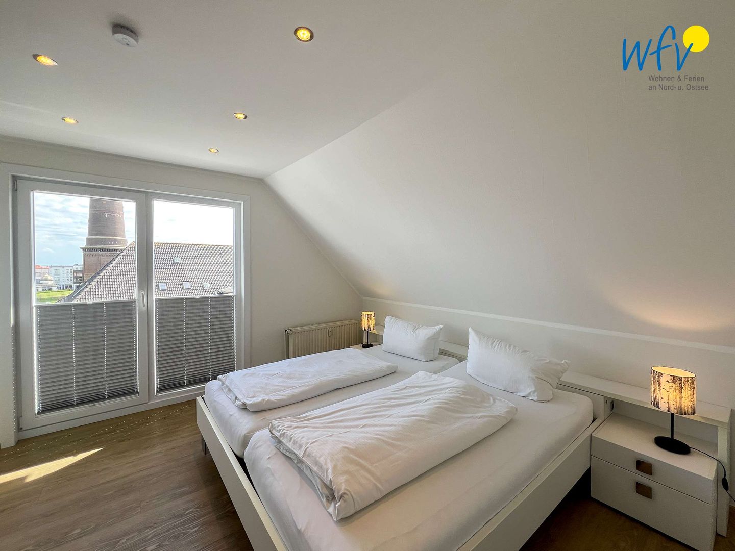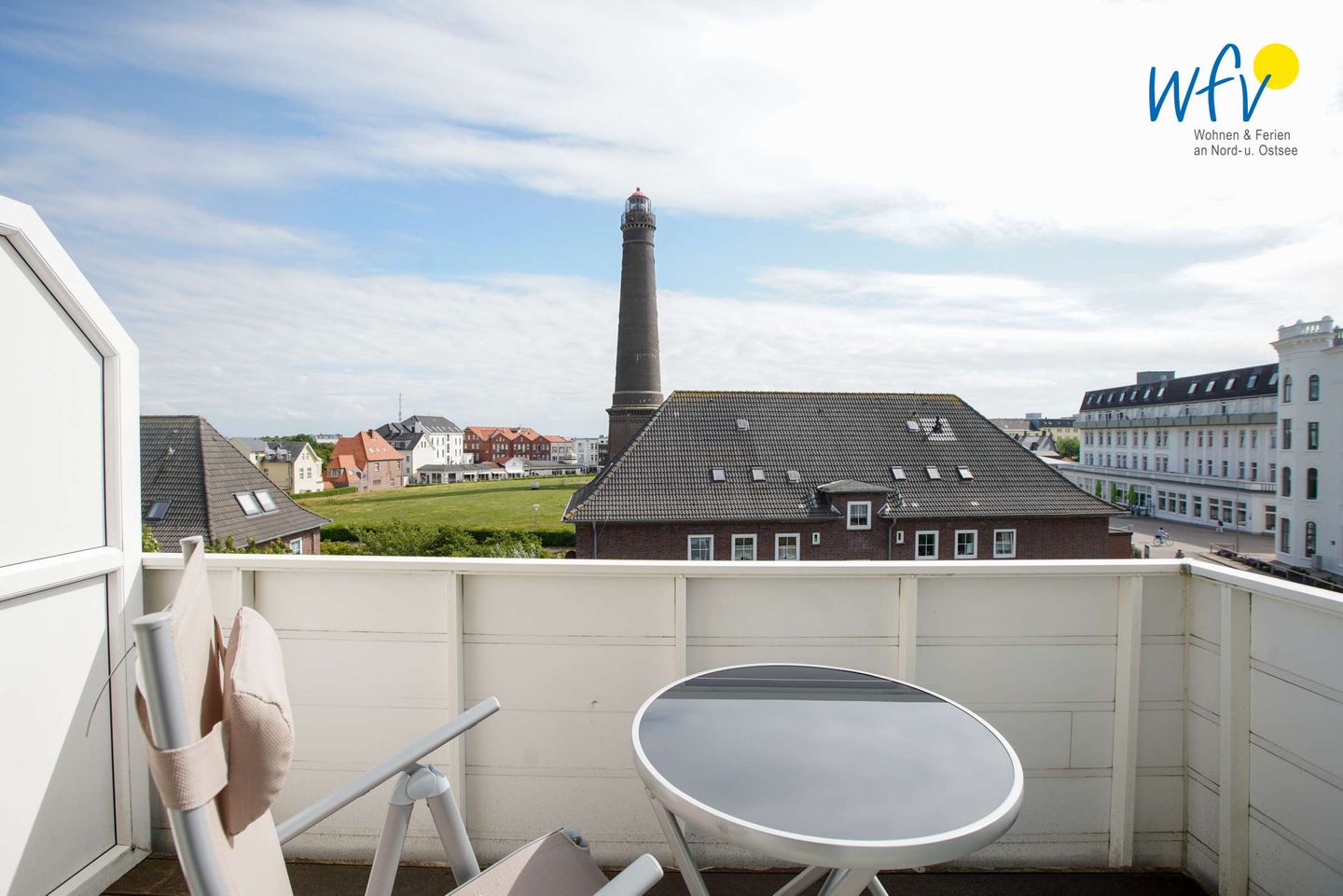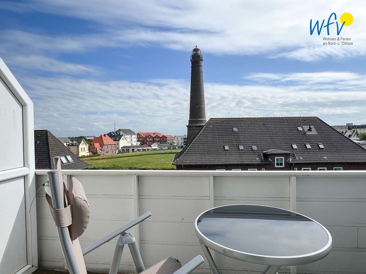 Wohltuende Nordseeluft genießen Sie auf dem Süd-Balkon der "Ferienwohnung Meerblick". Von hier aus haben Sie einen schönen Blick auf den Neuen Leuchtturm und auch die Nordsee können Sie bereits sehen - ein herrliches Urlaubsgefühl!