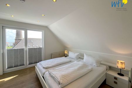 In der "Ferienwohnung Meerblick" erwartet Sie ein gemütlicher Wohnraum mit integrierter Küchenzeile, Essplatz mit Meerblick (eingeschränkt) und Sofaecke sowie ein separates Schlafzimmer, ein modernes Duschbad und ein Süd-Balkon mit Blick auf den Neuen Leuchtturm. Liebevolle maritime Accessoires sorgen für das entsprechende Nordseegefühl in Ihrem Urlaub am Meer.
