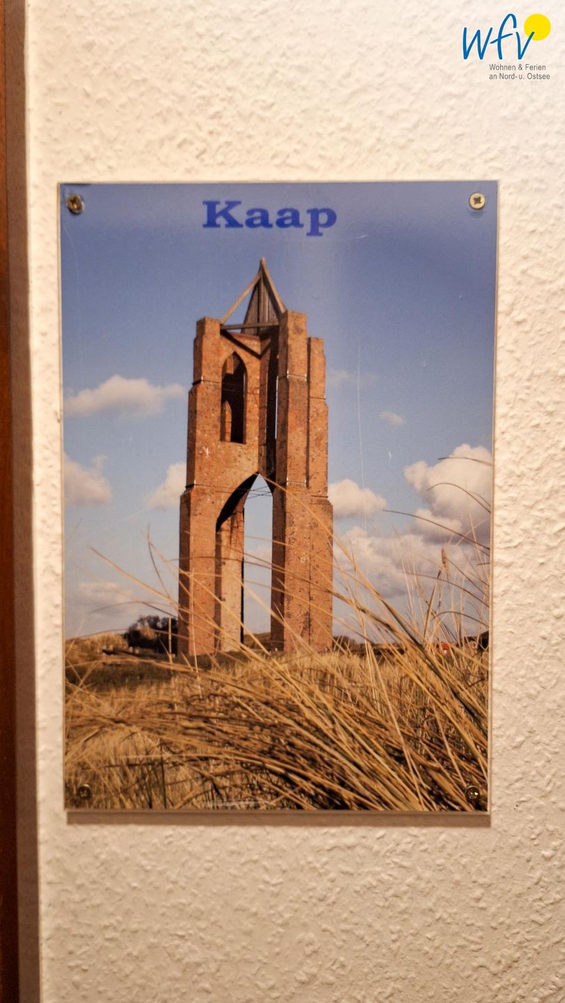 Die „Ferienwohnung Kaap" verfügt über eine optimale Raumaufteilung mit ansprechendem Wohnraum, offener Küche, separatem Schlafzimmer und modernem Duschbad. Große Fenster sorgen für viel Tageslicht, moderne Möbel für Gemütlichkeit und maritime Inselbilder für das entsprechende Nordseeflair.