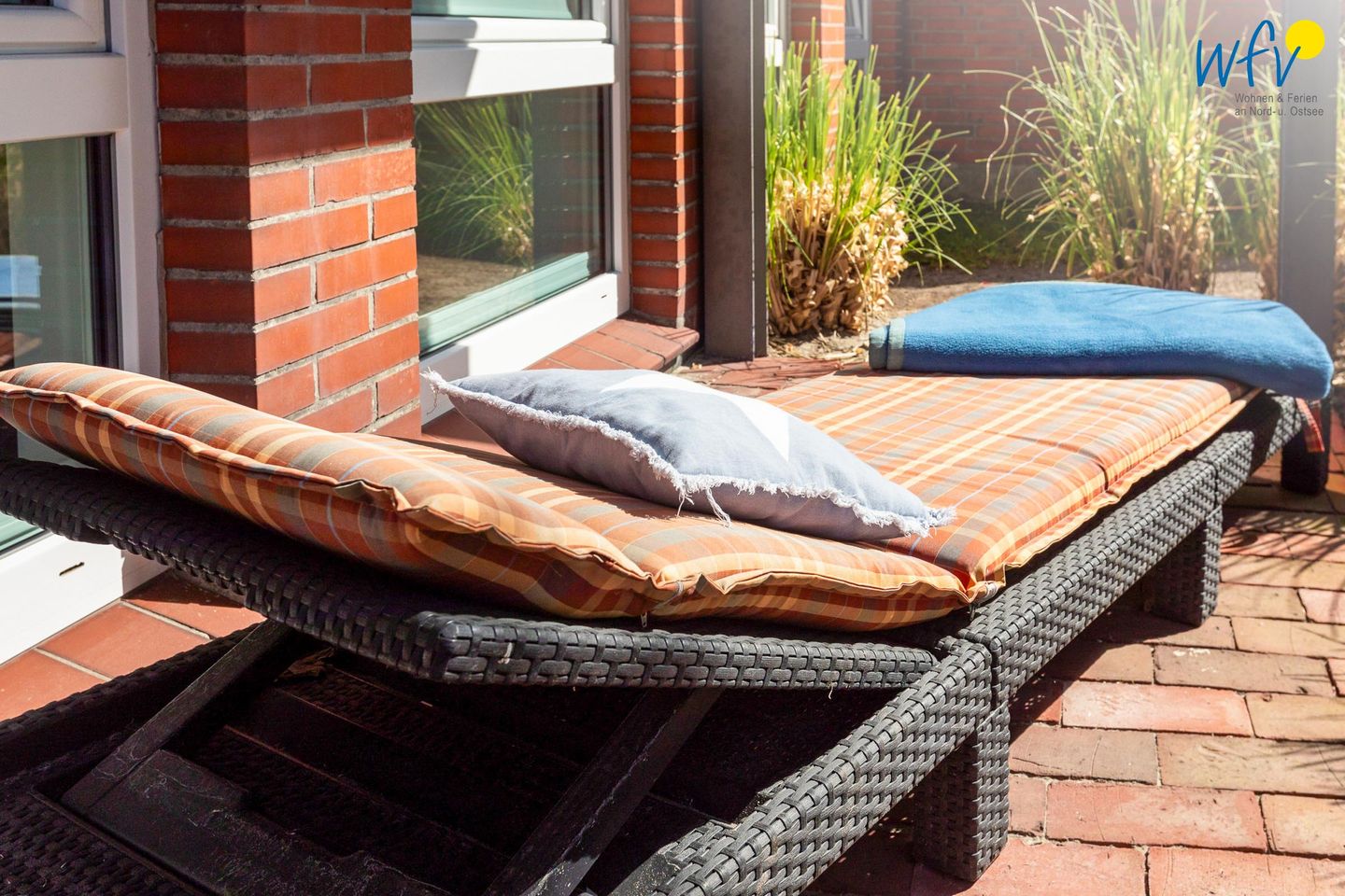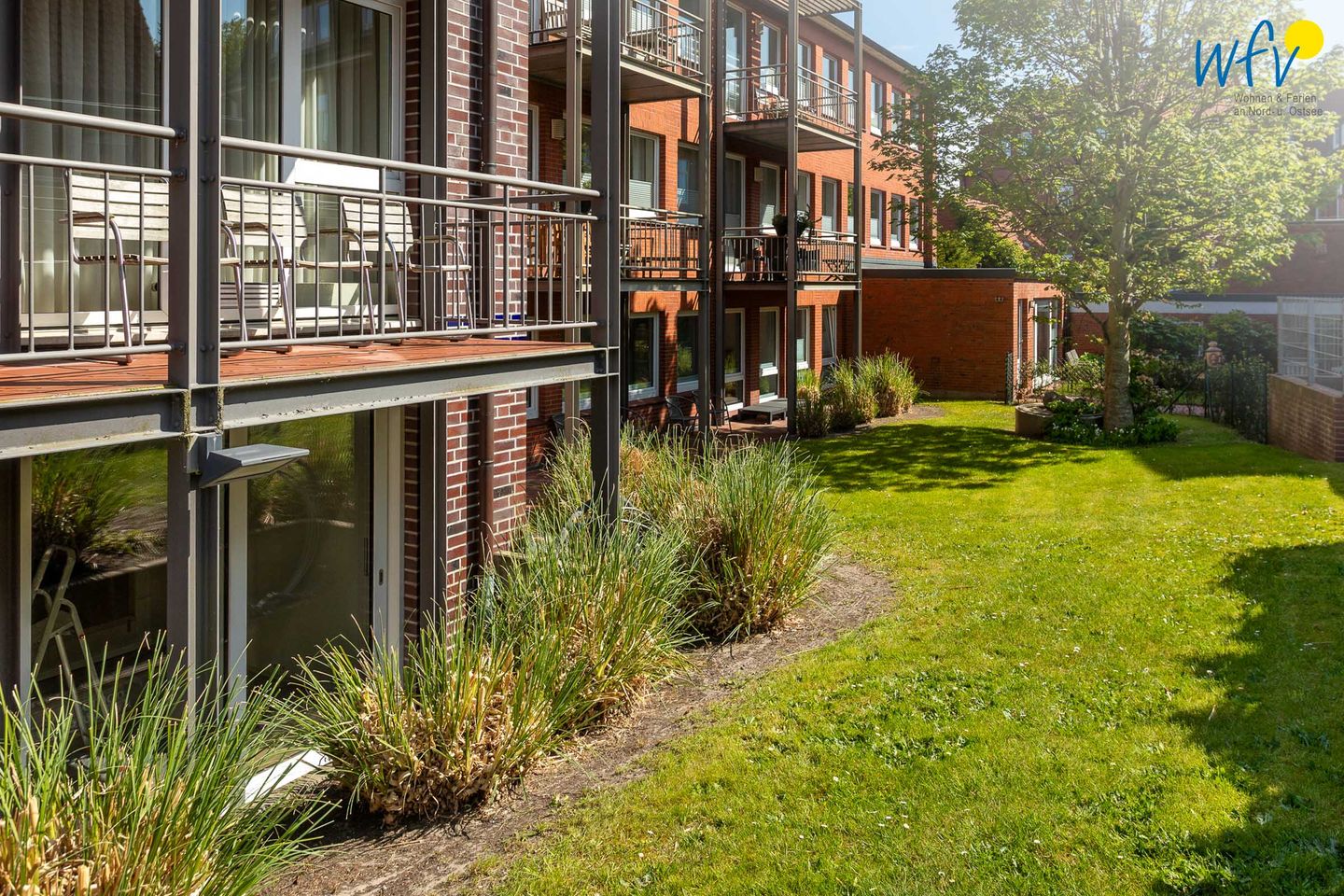 Sonne und Nordseeluft buchen Sie bei uns inklusive: Im hübsch gestalteten Gemeinschaftsgarten mit Gartenstühlen, Sonnenliege, Sitzgruppen und Grillplatz können Sie sich rundum erholen - ein herrliches Urlaubsgefühl!
