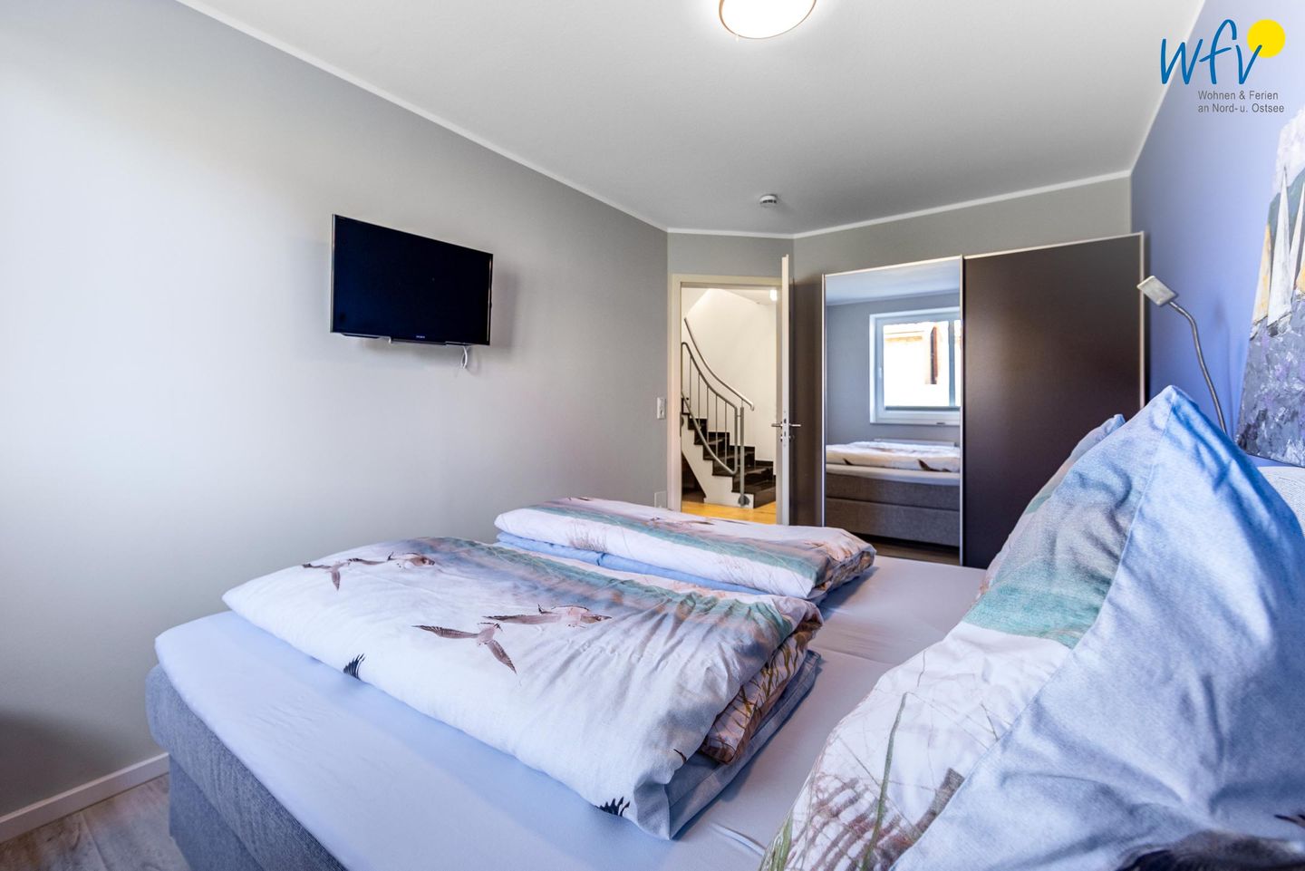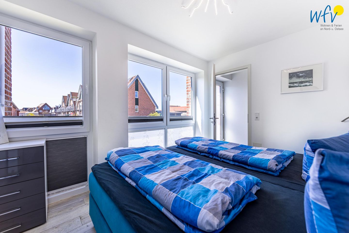 In der Juister Ferienwohnung bieten Ihnen drei separate Schlafzimmer angenehme Aufteilungsmöglichkeiten. Zwei der Zimmer sind jeweils mit einem Doppelbett ausgestattet, das dritte Zimmer mit einem Einzelbett. In allen Schlafzimmern befindet sich ein moderner Flachbildfernseher.