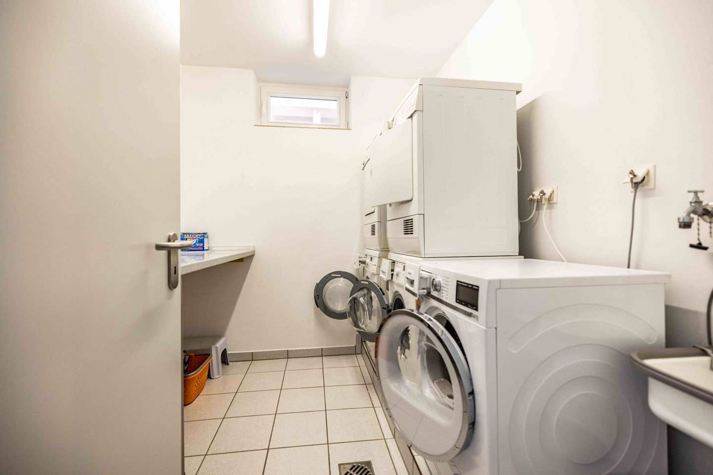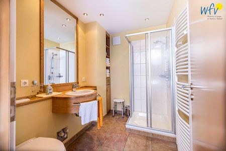 Das elegante Tageslichtbad mit Dusche, zwei Waschtischen, Handtuchheizung und Bidet ergänzt den Wohnkomfort.