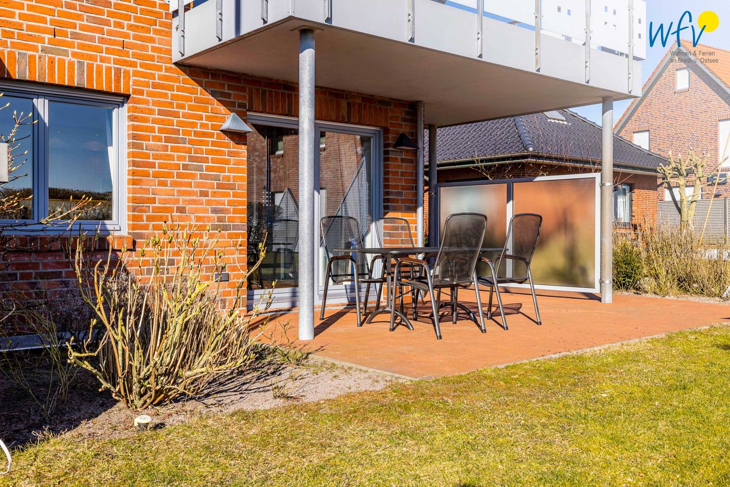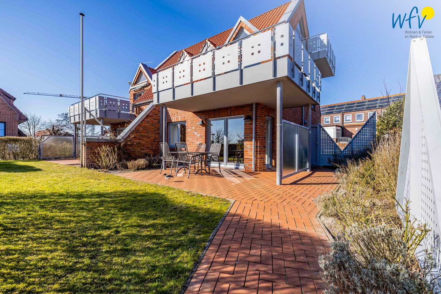 Sonne und Nordseeluft buchen Sie in der "Villa Kunterbunt" auf Juist gleich mit: Auf der wohnungseigenen 30 m² großen Südterrasse mit Gartenmöbeln und Strandkorb sowie auf der Liegewiese und im Gemeinschaftsgarten können Sie ausgiebig entspannen.