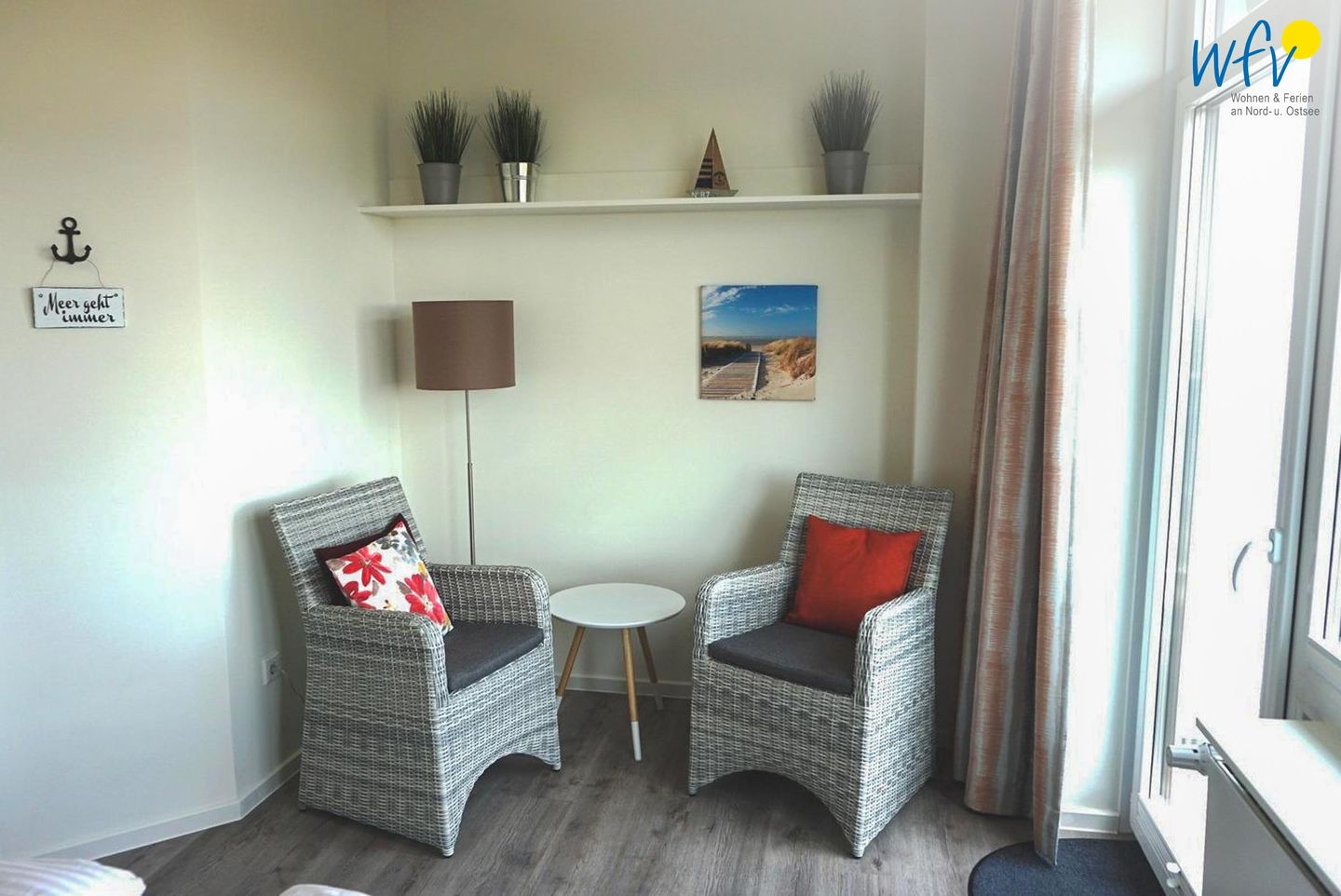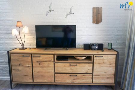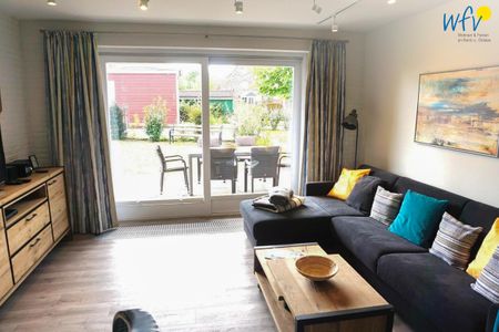 Die Maisonettewohnung verfügt über 75 m² und erstreckt sich über zwei Etagen (EG und OG). In der unteren Etage empfängt Sie ein offener Wohnraum mit gemütlicher Couchecke, TV, Blu-ray-Player und HiFi-Anlage. Die integrierte moderne Küche - u.a. mit Induktionsherd, Backofen und Spülmaschine - sowie ein Essplatz mit herrlichem Blick in den Garten bieten Platz für gemeinsame Stunden. Vom Wohnbereich aus gelangen Sie auf die großzügige, überdachte und möblierte Süd-West-Terrasse. Ein weiteres Plätzchen zum Verweilen finden Sie im direkt angrenzenden hauseigenen Garten mit Sonnenliegen.