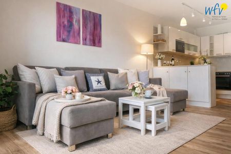Die moderne Maisonettewohnung verfügt über 75 m² und erstreckt sich über zwei Etagen (EG und OG). In der unteren Etage empfängt Sie ein offener Wohnraum mit gemütlicher Couchecke und TV. Auch die offene moderne Küche sowie ein Essplatz bieten Platz für gemeinsame Stunden. Zur Ausstattung gehören hochwertige Küchengeräte - u.a. ein Ceranherd, ein Backofen, eine Mikrowelle und ein Geschirrspüler sowie drei Kaffeemaschinen (Filter/Kapsel/Pad) und ein Raclette.
