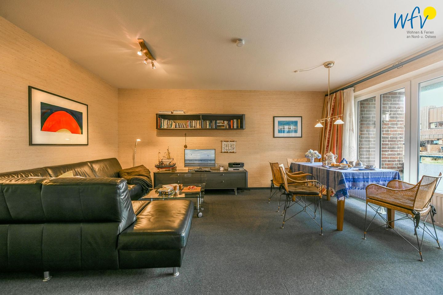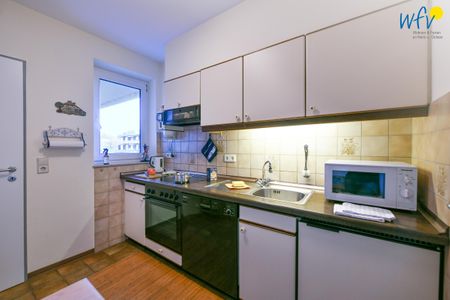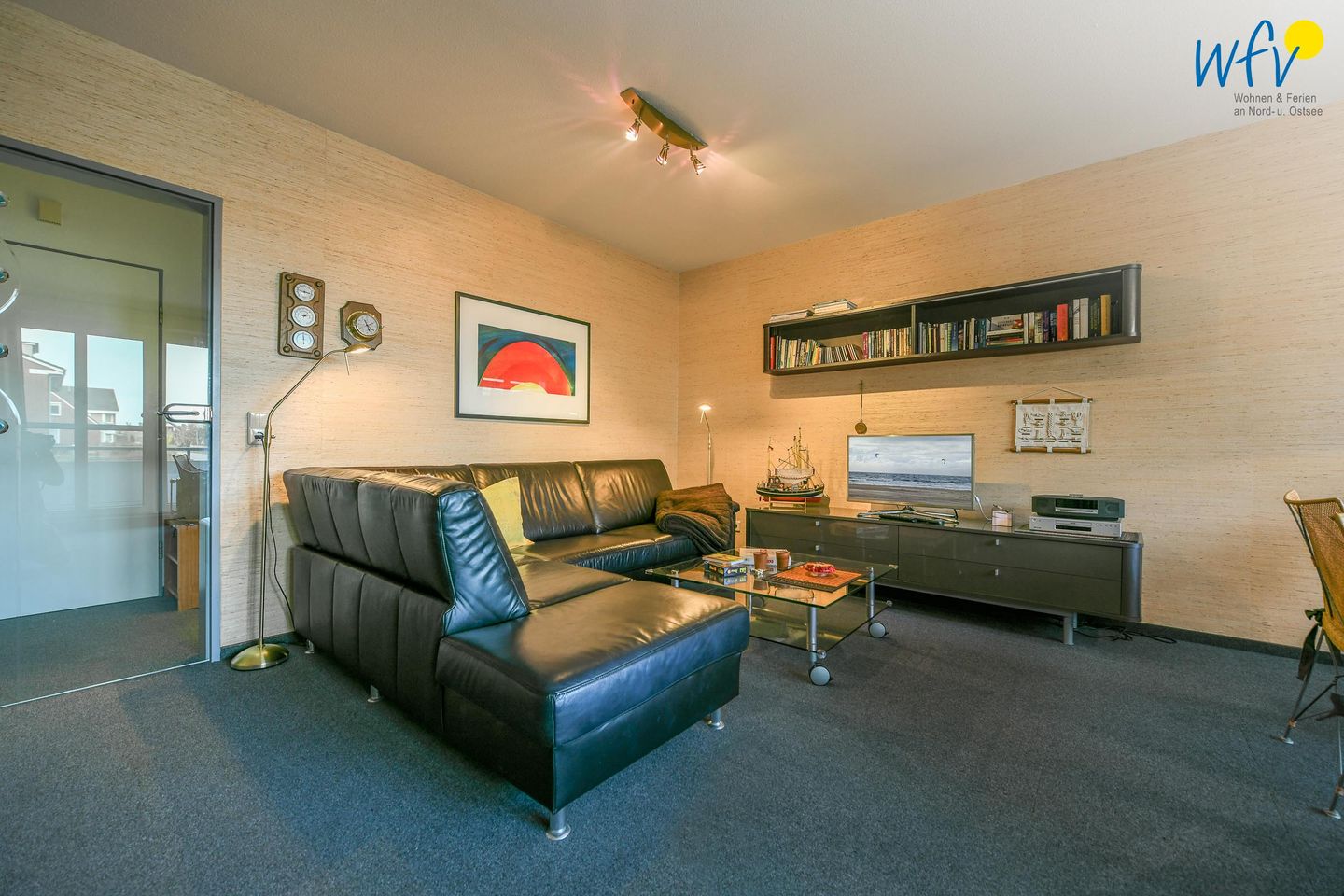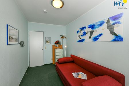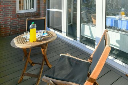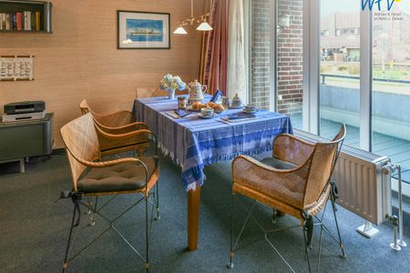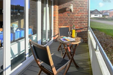 Die Unterkunft verfügt über 63 m², die sich in einen geräumigen Wohnraum, ein separates Schlafzimmer, ein weiteres Zimmer, eine separate Küche, ein modernes Duschbad und einen praktischen Abstellraum aufteilen. Auf dem überdachten Balkon mit schönem Blick in die ruhige Umgebung genießen Sie frische Nordseeluft - ideal, um zu lesen oder Mahlzeiten im Freien einzunehmen. Auch der Gemeinschaftsgarten und eine kleine Sitzecke mit Holzbänken bietet Gelegenheiten zum Verweilen.