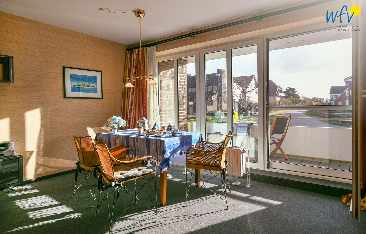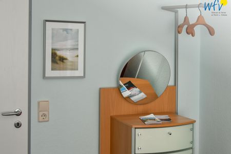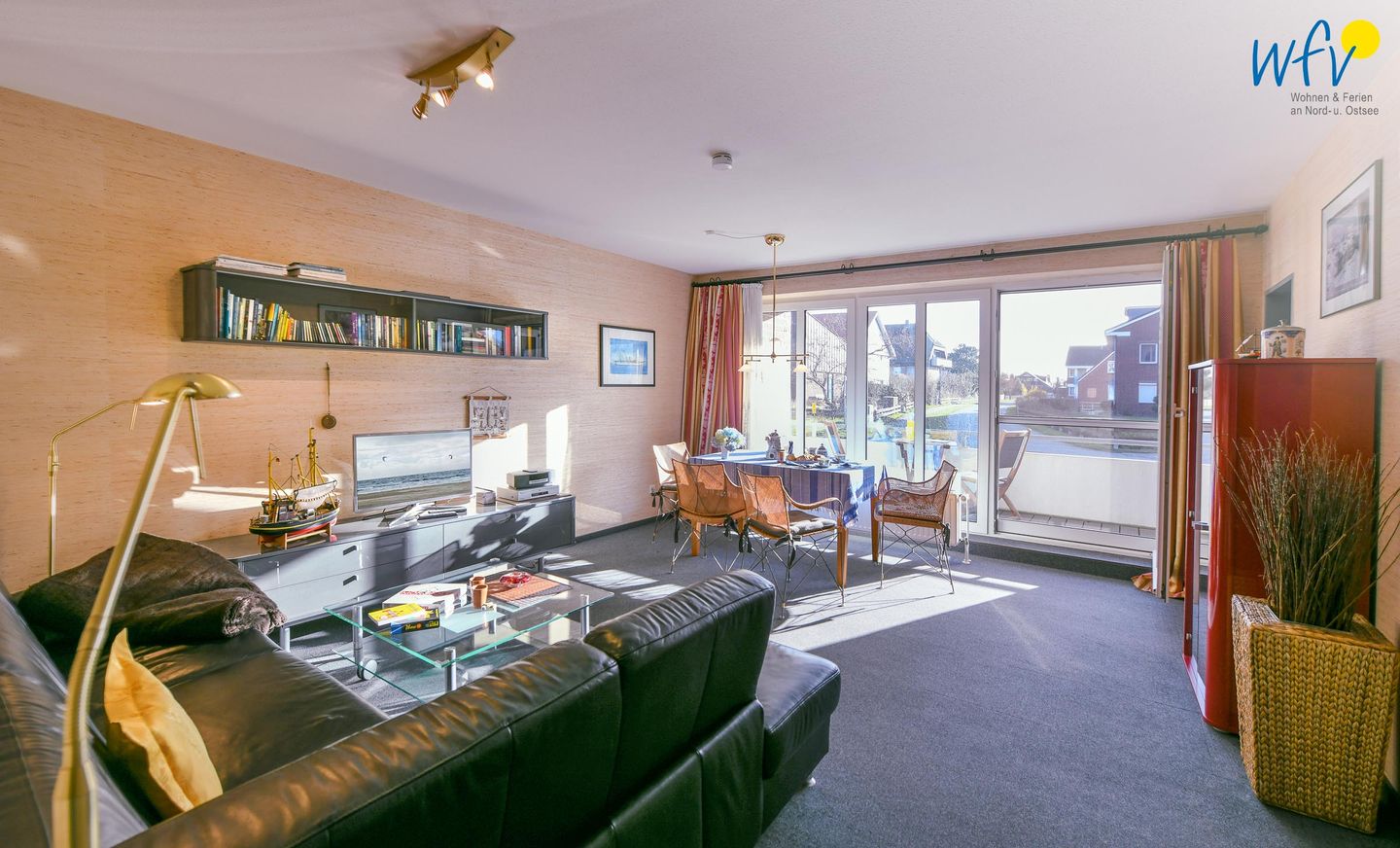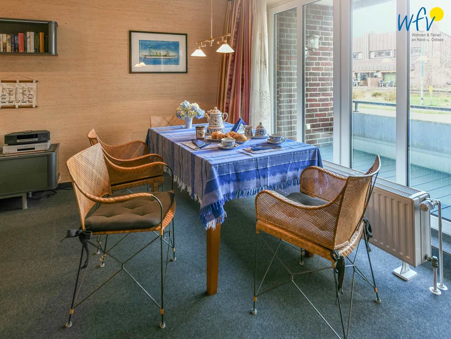 Die Unterkunft verfügt über 63 m², die sich in einen geräumigen Wohnraum, ein separates Schlafzimmer, ein weiteres Zimmer, eine separate Küche, ein modernes Duschbad und einen praktischen Abstellraum aufteilen. Auf dem überdachten Balkon mit schönem Blick in die ruhige Umgebung genießen Sie frische Nordseeluft - ideal, um zu lesen oder Mahlzeiten im Freien einzunehmen. Auch der Gemeinschaftsgarten und eine kleine Sitzecke mit Holzbänken bietet Gelegenheiten zum Verweilen.