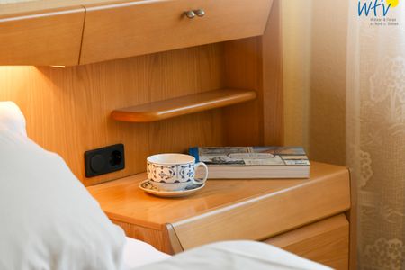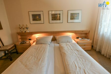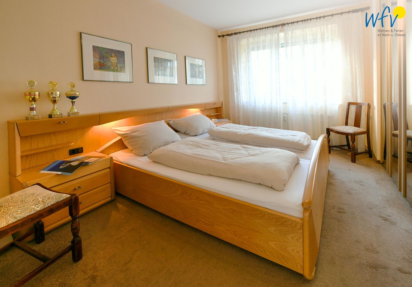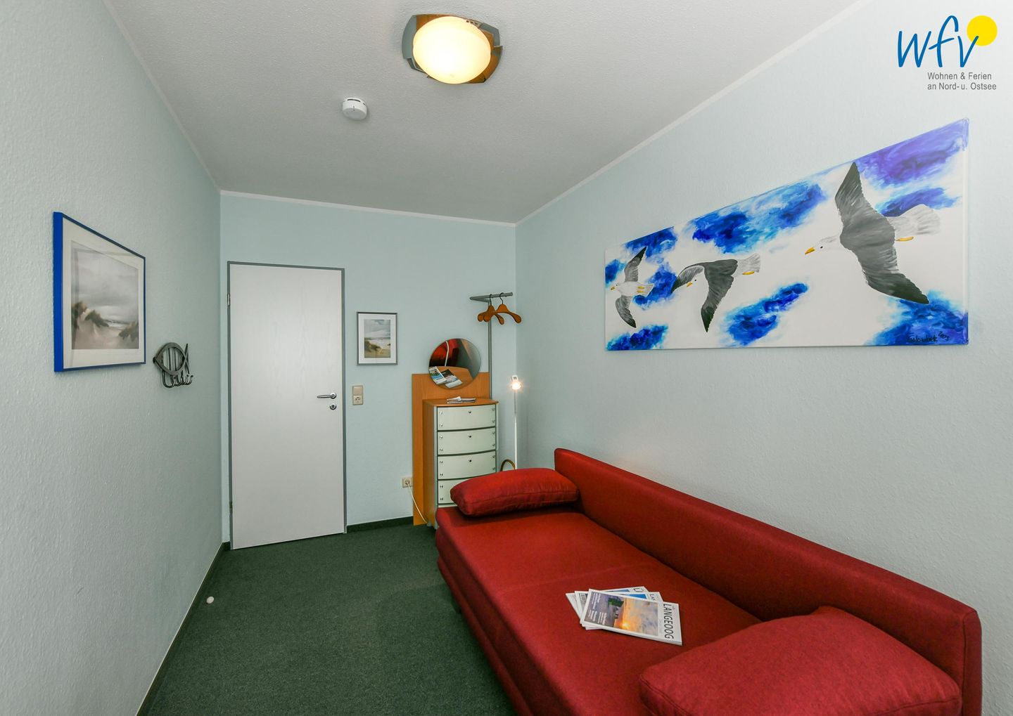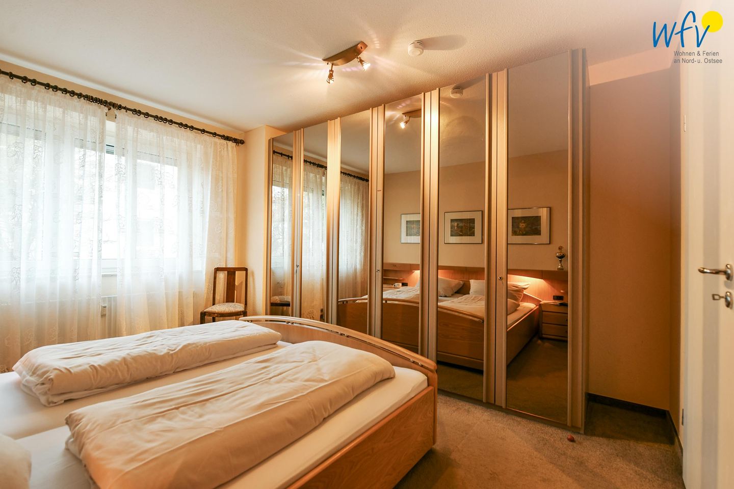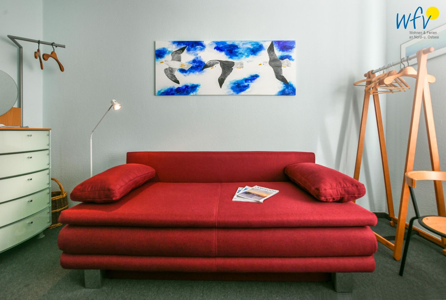 Das separate Schlafzimmer verspricht eine angenehme Nachtruhe. Ausgestattet ist es mit einem Doppelbett (2 x 90 x 200 cm) und einem geräumigen Kleiderschrank. In einem weiteren Zimmer befindet sich eine Schlafcouch, die sich schnell und einfach zu einem kleinen Doppelbett umfunktionieren lässt (2 x 75 x 200 cm).