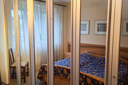 Das separate Schlafzimmer verspricht eine angenehme Nachtruhe. Ausgestattet ist es mit einem Doppelbett (2 x 90 x 200 cm) und einem geräumigen Kleiderschrank. In einem weiteren Zimmer befindet sich eine Schlafcouch, die sich schnell und einfach zu einem kleinen Doppelbett umfunktionieren lässt (2 x 75 x 200 cm).