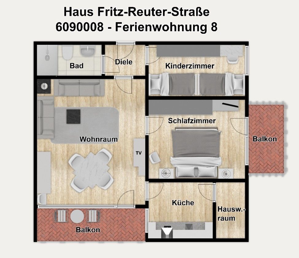 Herzlich willkommen in der charmanten "Ferienwohnung 8" im "Haus Fritz-Reuter-Straße" auf Langeoog! Hier genießen Sie einen Urlaub in strandnaher und zentraler Lage. Nur ein kurzer Spaziergang und Sie sind bereits an der Nordsee. Die Unterkunft bietet Ihnen mit zwei separaten Schlafzimmern, hellem Wohnraum, separater Küche und schönem Balkon einen gemütlichen Erholungsort für bis zu vier Personen. WLAN und TV ergänzen den Wohnkomfort. Wir wünschen Ihnen wunderschöne Ferien an der Nordsee!
