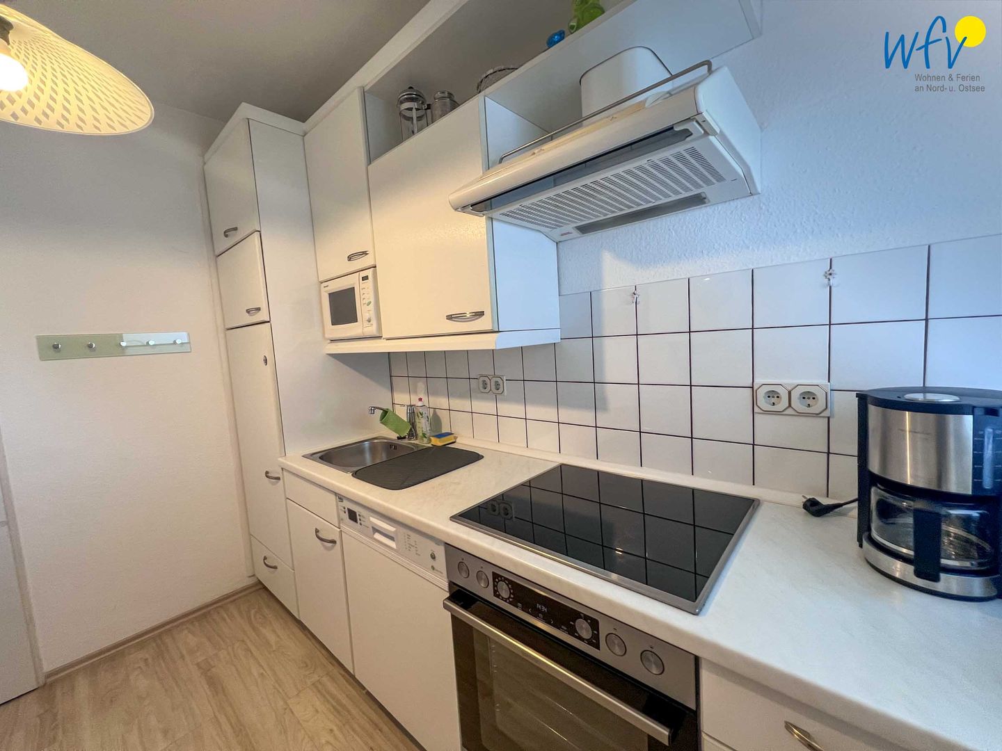Bereits beim Ferienfrühstück beginnen Sie den Urlaubstag mit einem schönen Ausblick in die Umgebung. In Gedanken wird schon die Badetasche gepackt oder der Rucksack für den Strandspaziergang. Warme Frühstücksbrötchen, kleine Snacks für den Ausflug und leckere Mahlzeiten lassen sich in der gut ausgestatteten separaten Küche zubereiten. Ein 4-Platten-Ceranherd, ein Backofen, eine Mikrowelle und ein Geschirrspüler ermöglichen Ihnen eine bequeme Selbstverpflegung sowie gemeinsames Kochen und Klönen.