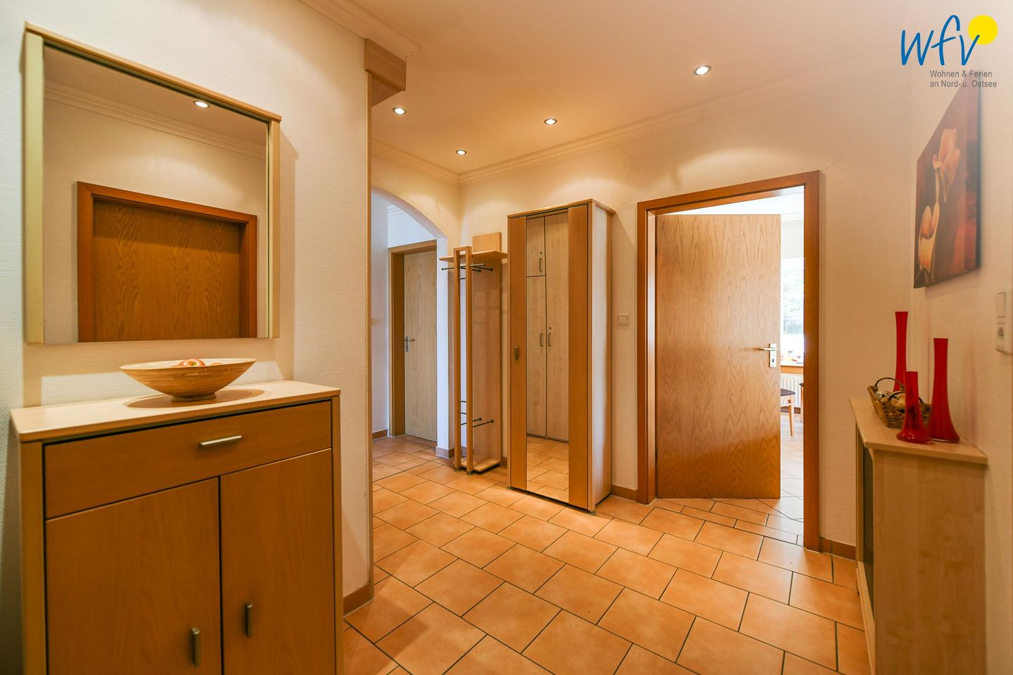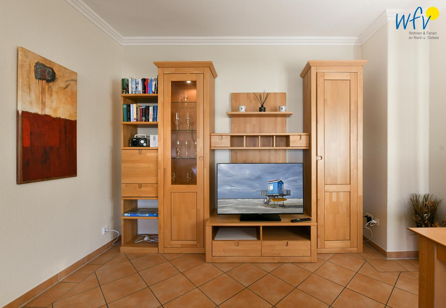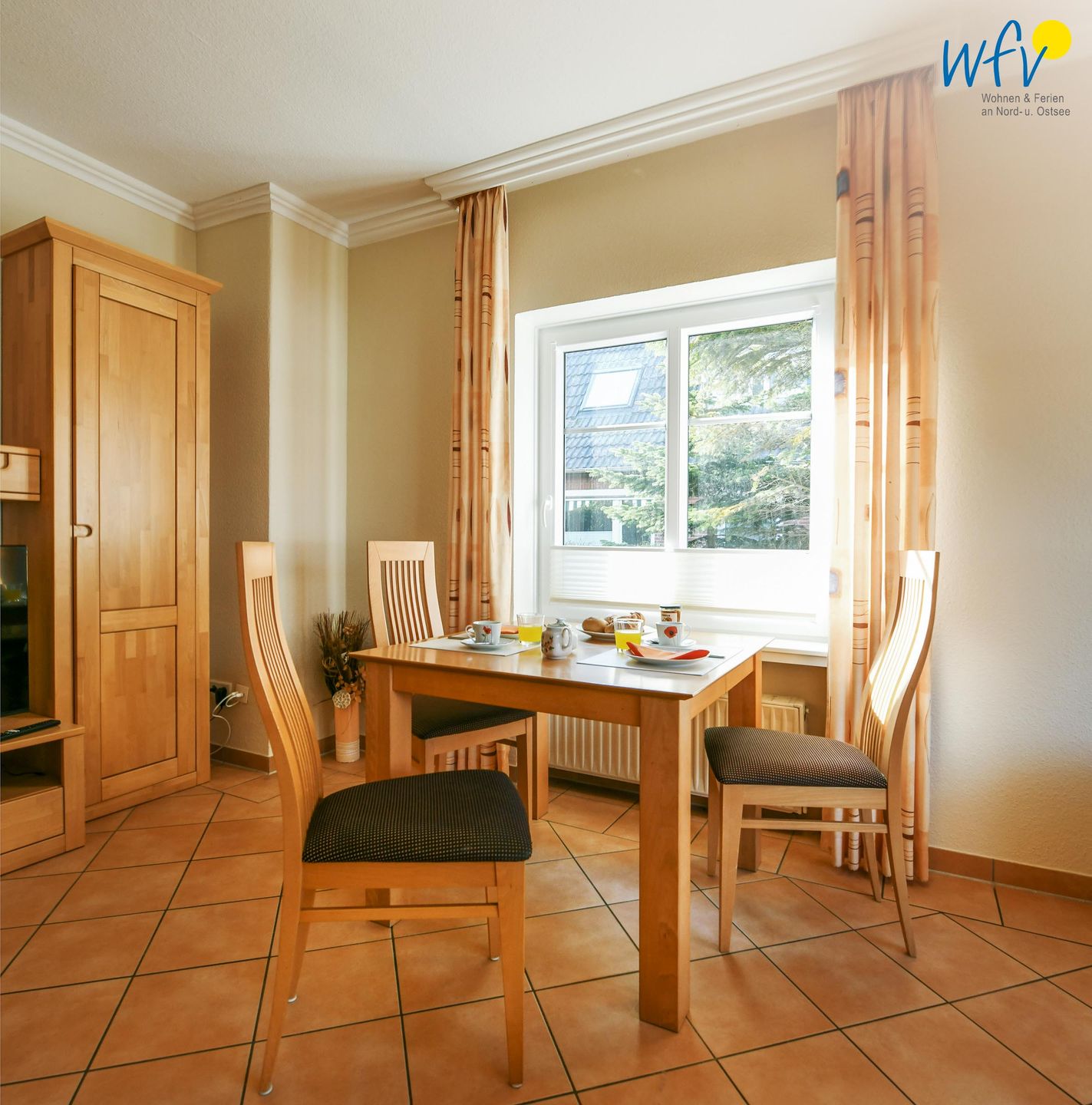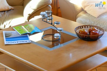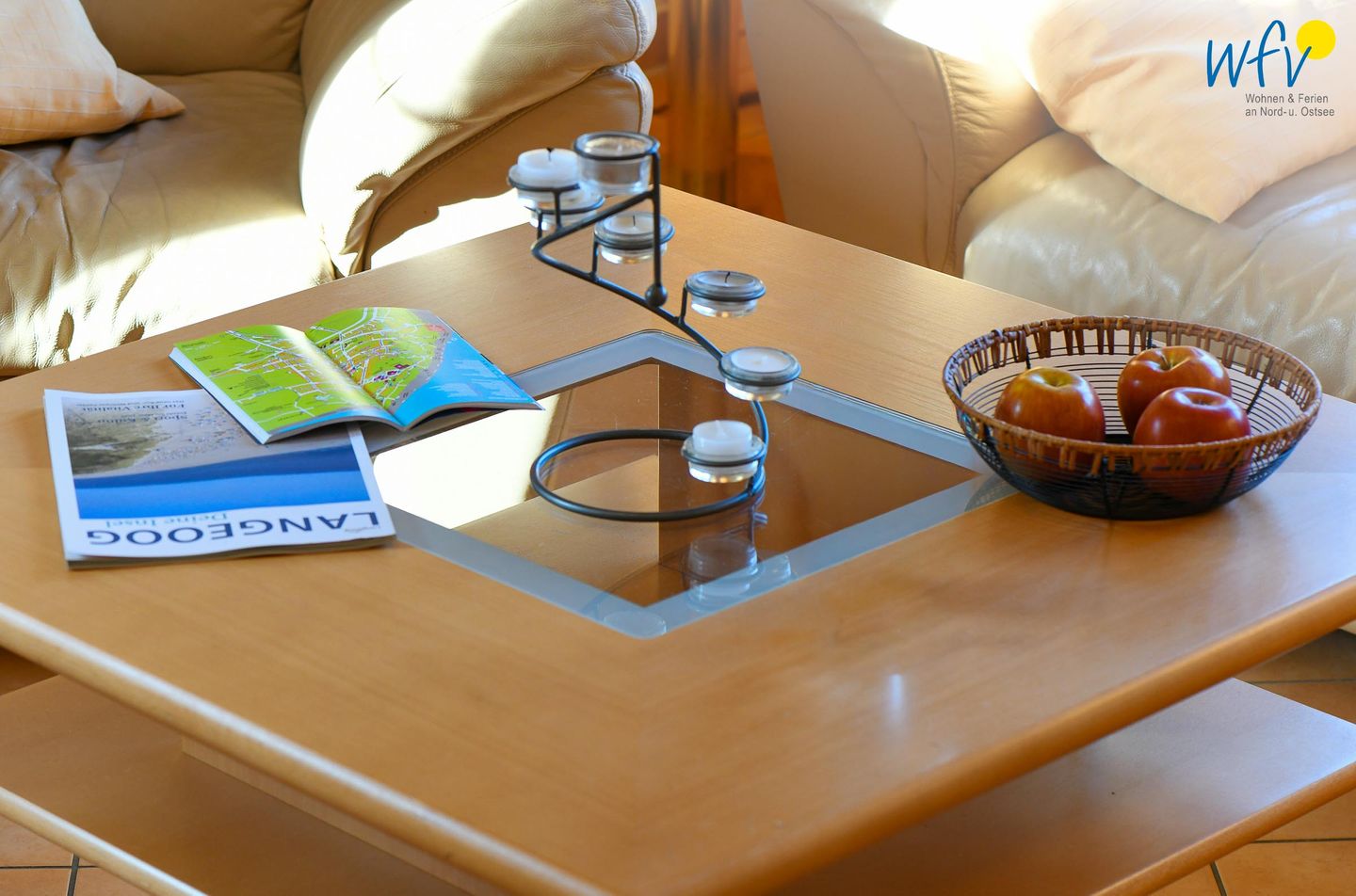Nach der Fahrradtour oder dem Strandtag lädt der lichtdurchflutete Wohnbereich mit Couch, Sessel und Essecke zu gemütlichen Stunden mit der Familie ein.