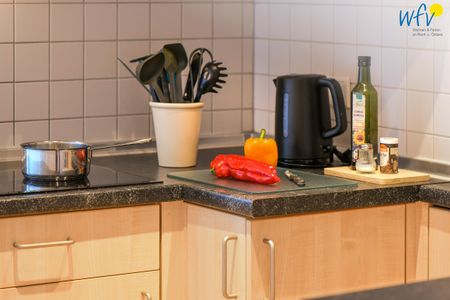Das Ferienfrühstück, Snacks für den Ausflug oder das Dinner lassen sich bequem in der separaten Küche zubereiten, die u.a. mit einem Cerankochfeld, Mikrowelle, Spülmaschine, Spüle, Toaster und Kaffeemaschine ausgestattet ist.