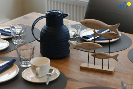 Sie möchten gerne mit mehreren Personen verreisen? Die Anmietung des kompletten Hauses bietet Ihnen Platz für bis zu 8 Personen. Sprechen Sie uns gerne an oder geben Sie auf unserer Website unter der Suchfunktion (Lupensymbol) "Großer Inselblick" ein.