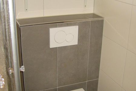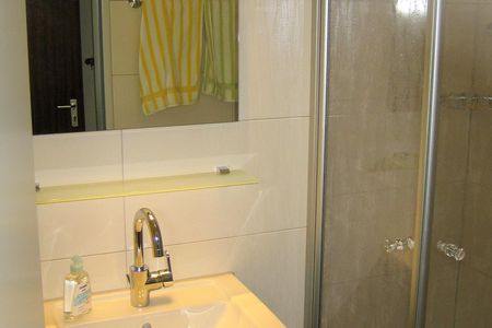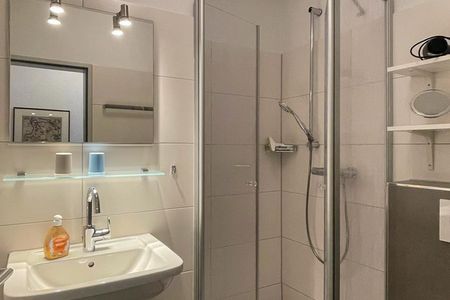 Wohnkomfort bietet Ihnen auch das moderne Badezimmer mit Dusche, Waschbecken, WC und beleuchtetem Spiegel.