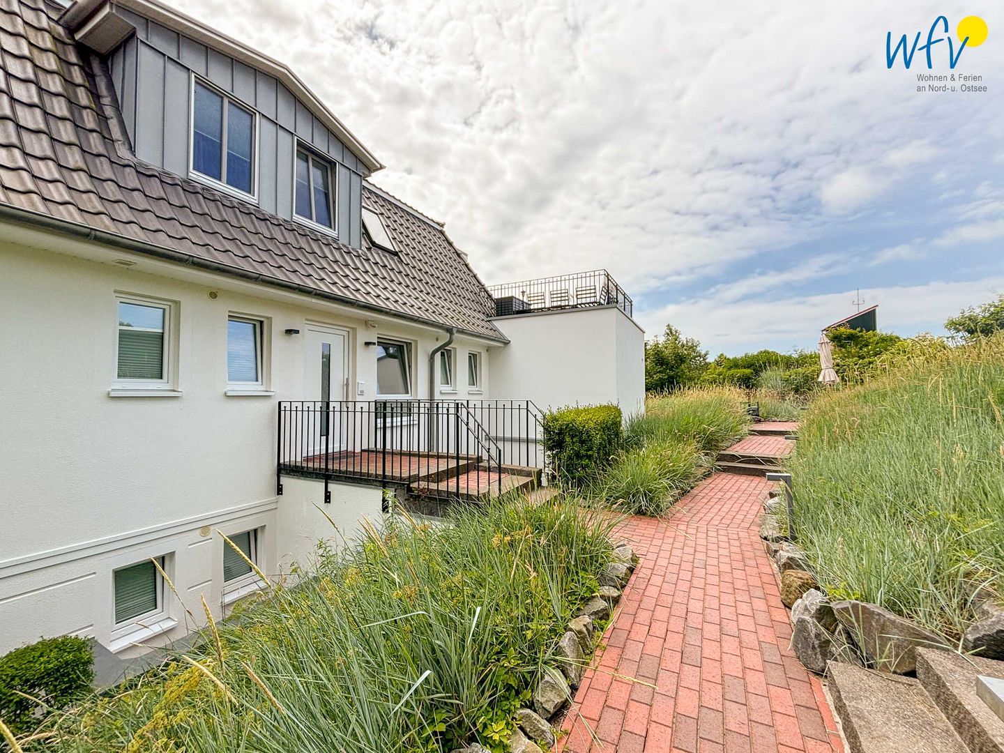 Das Bonbon der "Ferienwohnung 4" auf Wangerooge ist sowohl der sonnige wohnungseigene Balkon mit herrlichem Dünenblick, als auch die 18 m² große Terrasse inmitten der Dünen. Hier können Sie wunderbar frische Nordseeluft genießen und entspannen.