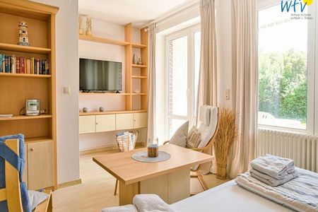 Genießen Sie in unserer "Ferienwohnung Sandfloh" auf Wangerooge herrlich entspannte Urlaubstage! Ein gemütlicher Wohn-/Schlafraum und eine offene Küche sowie eine sonnige Südterrasse mit Garten bieten Ihnen Platz für die Auszeit zu zweit. Annehmlichkeiten wie SmartTV und freies WLAN sorgen für weiteren Komfort. Wir wünschen Ihnen gute Erholung in sehr schöner, zentraler und strandnaher Lage. Nach nur 10 Minuten Fußweg begrüßen Sie bereits die Nordsee!