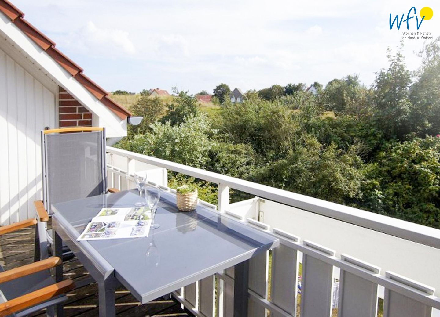 Wohltuende Nordseeluft buchen Sie bei uns inklusive: Ein sonniger Balkon mit sehr schönem Dünenblick und eine sonnige Südterrasse mit Gartenmöbeln und Strandkorb laden zum Ausspannen ein. Die Terrasse ist überdacht, sodass Sie sich bei Sonne (ganztägig) und auch bei Regen ungestört erholen können - ein herrliches Urlaubsgefühl!