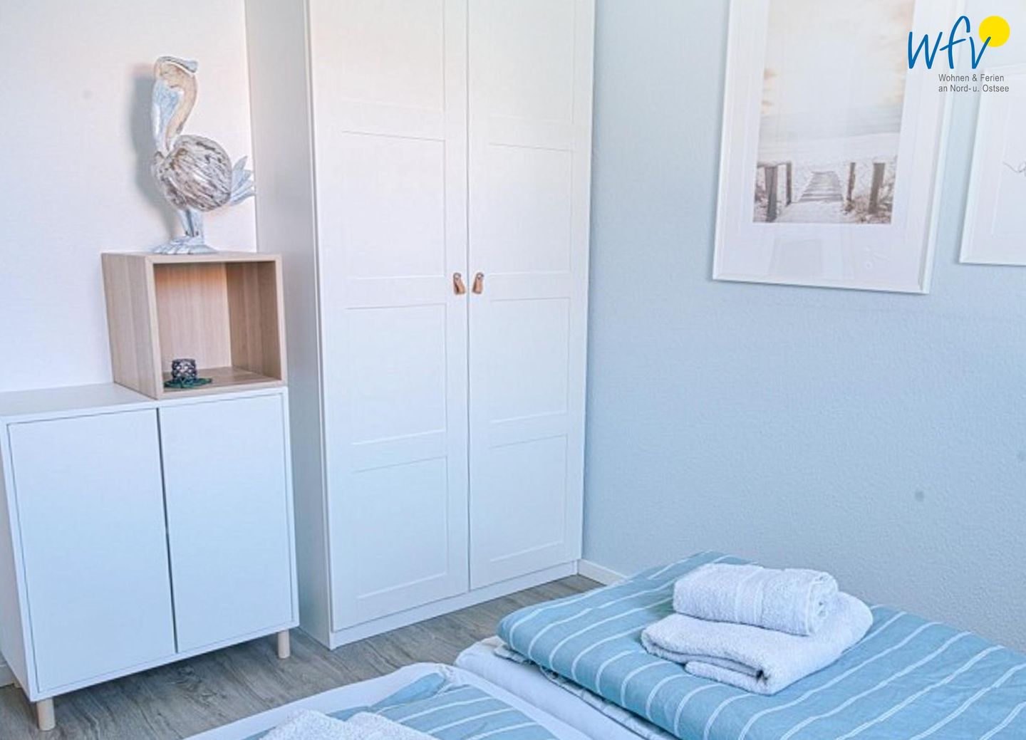 Zwei separate Schlafzimmer bieten Ihnen angenehme Rückzugsmöglichkeiten. Eines befindet sich auf der ersten Etage und verfügt über ein Doppelbett (160 x 200 cm) und ein TV. Das zweite Zimmer liegt im 2. OG und ist mit zwei Einzelbetten eingerichtet (je 100 x 200 cm). Im Wohnraum des EGs steht Ihnen außerdem ein Boxspringbett (180 x 200 cm) zur Verfügung.