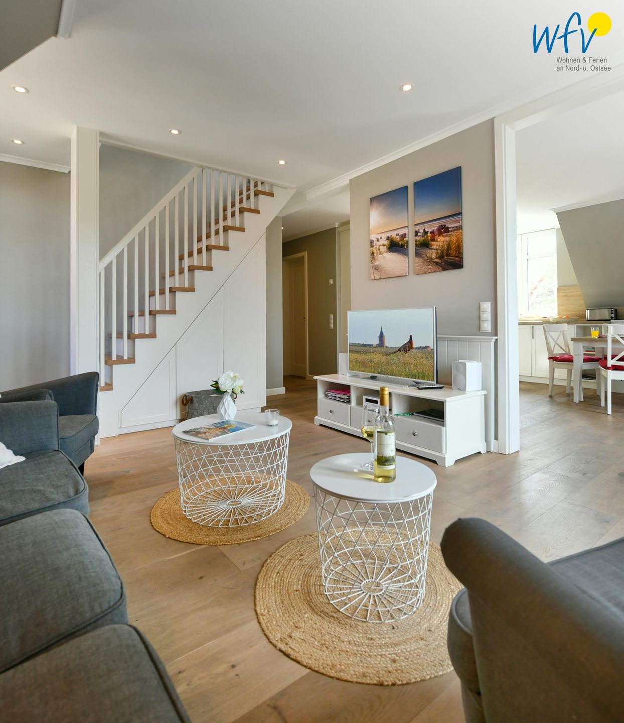 Genießen Sie Wohlfühlferien auf Wangerooge! Eine großzügige Raumgestaltung über drei Etagen, modernes Mobiliar und ausgewählte Accessoires verleihen unserem exklusiven "Ferienhaus Charlotte" eine wunderschöne Atmosphäre zum Entspannen.