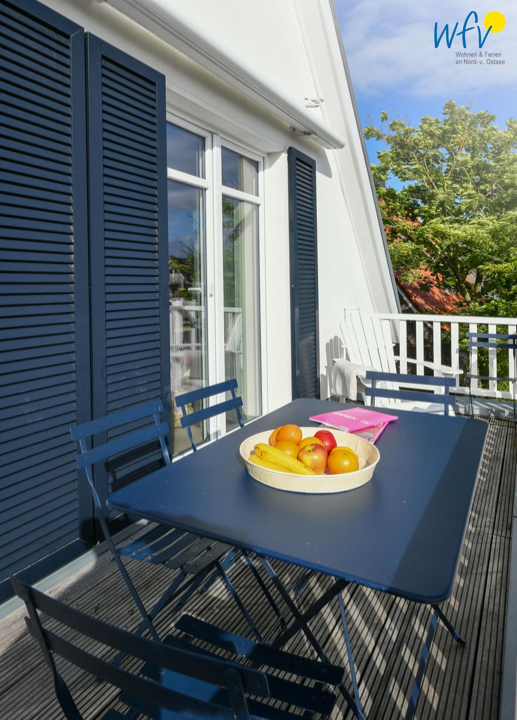 Im Obergeschoss befindet sich der zweite Wohnraum mit einer modernen Küche – u.a. mit Ceranherd, Backofen und Geschirrspüler - sowie einem Essplatz und einer bequemen Couchecke mit TV und DVD-Player. Von hier aus gelangen Sie auf den möblierten Balkon in Südlage, der zum herrlichen Sonnenbad einlädt. Des Weiteren befindet sich im OG ein separates Schlafzimmer mit komfortablem Boxspringbett (180 x 200 cm) und ein elegantes Design-Bad mit ebenerdiger Dusche. Das Bonbon der Ferienwohnung ist die eigene Sauna, in der Sie wunderbar entspannen können.