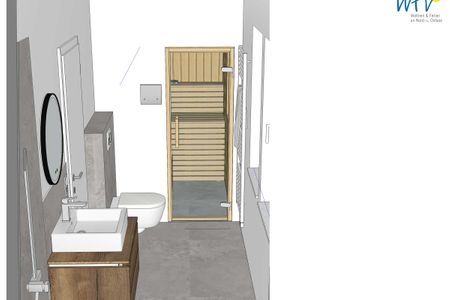 Das elegante Tageslicht mit ebenerdiger Dusche lädt zur Erfrischung nach dem Strandtag ein, die wohnungseigene Sauna zur Erholung mit wohliger Wärme.