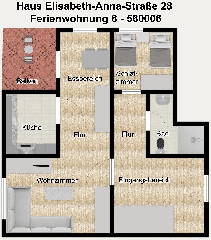 Nordseeurlaub in strandnaher und zentraler Lage! Unsere gemütliche „Ferienwohnung 6" im „Haus Elisabeth-Anna-Straße 28" auf Wangerooge bietet Ihnen Platz für bis zu 4 Personen. Ein heller Wohnraum, ein separates Schlafzimmer sowie eine offene Küche laden zu erholsamen Tagen ein. Wohltuende Nordseeluft genießen Sie auf dem überdachten Balkon mit schönem Blick in die Umgebung. Wir wünschen Ihnen entspannte Ferien am Meer!