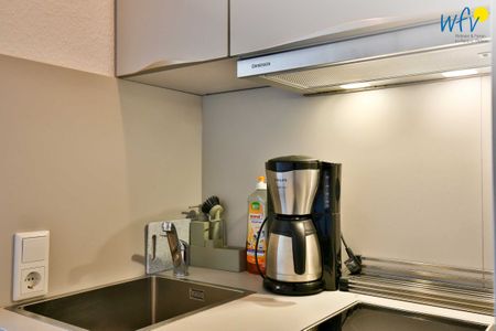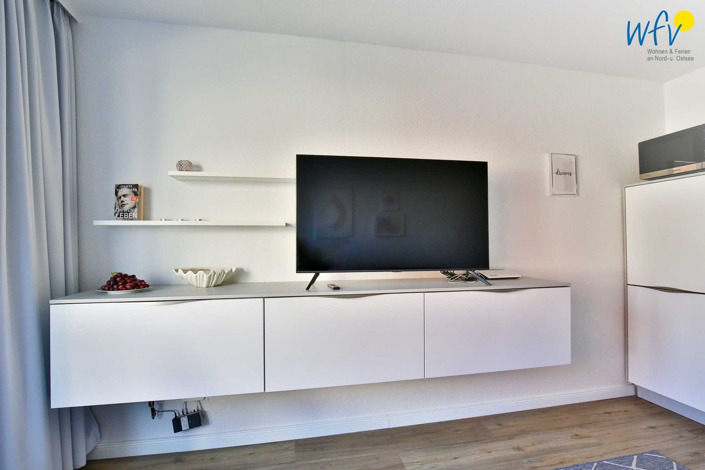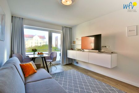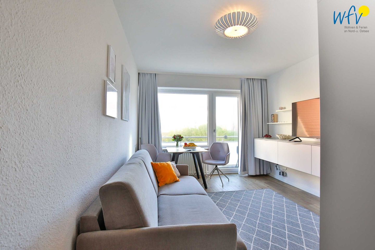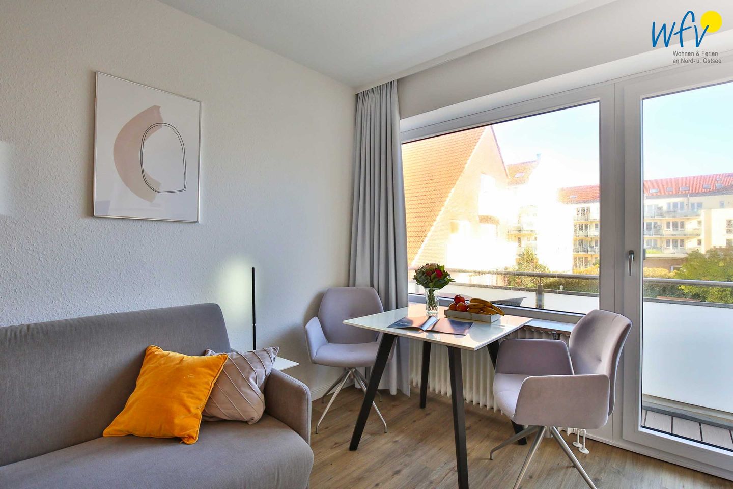 In dem Ein-Raum-Appartement empfängt Sie eine helle und freundliche Einrichtung, die zum Wohlfühlen einlädt. Durch die nach Osten ausgerichtete Fensterfront ist die Wohnung lichtdurchflutet, sodass Sie besonders beim morgendlichen Frühstück die ersten Sonnenstrahlen genießen können. Oder Sie starten auf dem möblierten Ostbalkon in den Tag - bei Sonne und Meeresrauschen. Von hier aus haben Sie außerdem einen sehr schönen seitlichen Meerblick!