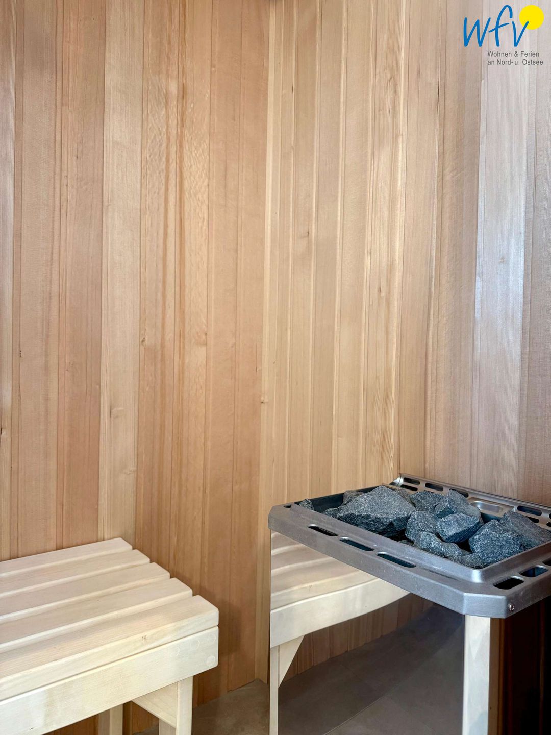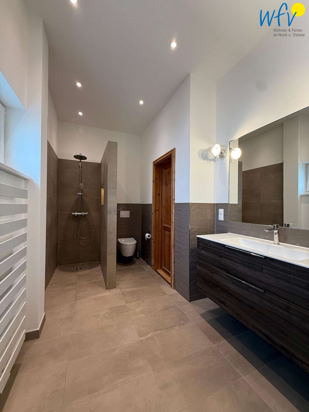 Für weiteres Wohlbefinden sorgt ein großes elegantes Badezimmer inklusive Sauna. Ideal, um nach dem Strandspaziergang ausgiebig zu entspannen!