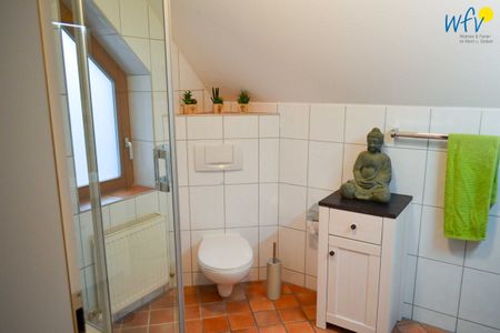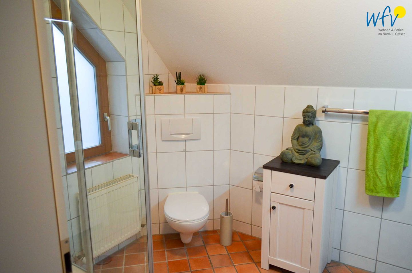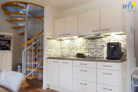 Bereits beim Betreten der Wohnung empfängt Sie eine einladende Atmosphäre. Helle Räume und eine moderne Einrichtung sorgen für Gemütlichkeit, maritime Accessoires für das entsprechende Ostseeflair. Die Maisonettewohnung erstreckt sich ab der 1. Etage über Obergeschoss und Dachgeschoss. Unten empfängt Sie ein offener Wohnraum mit integrierter Küche, Essplatz und Sitzecke mit TV - perfekt für gemeinsame Stunden zum Ausspannen. Oben befindet sich ein separates Schlafzimmer. Vom Wohnraum aus gelangen Sie auf den überdachten Balkon, auf dem Sie auch bei wechselhaftem Wetter entspannt draußen sitzen können. Als besonderes Highlight genießen Sie Seeblick – ideal, wenn Sie Ihren Aufenthalt gern mit einer stimmungsvollen Atmosphäre verbinden möchten, und auch für romantische Auszeiten.